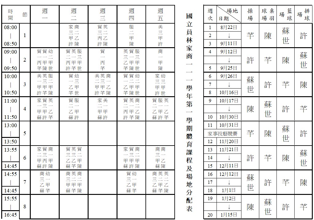 體育場地分配表